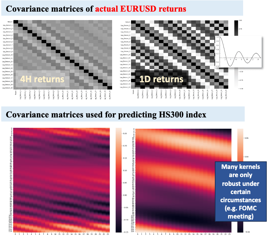 •GP can be seen as a more restricted form of ARMA model, which aims to measure the mathematical structure underpinning serial correlation (using kernel function), rather than simply estimating the values of serial correlation.